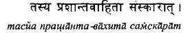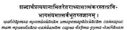 кхутипада В этой главе, названной «Вибхутипада», Патанджали рассказывает о способностях ума, который с помощью различных техник, описанных в двух предыдущих главах, может достичь состояния свободы от всех отвлекающих факторов. Такой ум способен глубоко проникать в объекты и идеи; у него есть для этого поистине бесчисленные возможности. В результате знание индивидуума об объектах приобретает неведомые прежде измерения. Однако это знание само по себе может играть роль отвлекающего фактора и мешать человеку достичь высочайшего состояния бытия — постоянной неподверженности любым воздействиям. Следующие три сутры описывают уже упомянутые в сутре 2.29 шестой, седьмой и восьмой компоненты йоги. Первые пять составляющих описаны во второй главе. 3.1 Ум становится сконцентрированным (дхарана), когда может быть направлен на выбранный объект, несмотря на присутствие многих других потенциально доступных ему объектов. Несмотря на привлекательность альтернативных объектов, выбирается лишь один. Выбранный объект может быть материальным или умозрительным, простым или сложным, осязаемым или неосязаемым, а условия могут быть благоприятными или трудными. Невозможно достичь умения сосредоточивать ум, если он отвлекается или находится под сильным влиянием таких препятствующих факторов, как заблуждение (см. сутру 2.3). 3.2 После того как ум зафиксирован в нужном направлении, начинает устанавливаться связь между умственными процессами и выбранным объектом. Затем движение ума образует непрерывный поток, связанный только с данным объектом. Поначалу на наше понимание влияют заблуждение, воображение и воспоминания. Но с ростом интенсивности восприятия наше понимание освежается и углубляется. 3.3 Вскоре индивид мысленно настолько погружается в объект, что его не интересует ничего, кроме понимания объекта. Это похоже на потерю своей индивидуальности. Происходит полная интеграция с объектом [самадхи]. Достигнув этого состояния, мы не видим ничего, кроме объекта. Мы даже не осознаем, что представляем собой отдельное от объекта самостоятельное существо. Наша ментальная деятельность целиком и полностью связана с объектом. 3.4 Три процесса, описанные в сутрах 3.1-3, могут происходить с разными объектами, а могут быть постоянно связаны с одним и тем же объектом. Состояние, когда эти процессы постоянно связаны только с одним объектом, называется «саньяма». 3.5 Каковы результаты непрерывной саньямы, направленной только на один объект? Саньяма на выбранный объект приводит к обретению исчерпывающего знания обо всех аспектах этого объекта. 3.6 Всякий ли объект можно использовать для Саньяма должна возникать постепенно. При выборе объекта саньямы следует правильно оценить свои потенциальные возможности в плане его исследования. Начинать следует с простых объектов и объектов, которые можно исследовать несколькими разными способами. Тогда у нас будет больше шансов на успех. Считается, что большую помощь в выборе объекта может оказать учитель, который хорошо нас знает. 3.6 В санъяме или любой другой практике невозможно точно сказать, что будет легче для того или иного человека. Патанджали вводит идею относительности. Все относительно. Данные три компонента йоги [сутры 3.1-3] сложнее, нем первые пять [сутра 2.29]. Первые пять компонентов — это отношение к окружающ