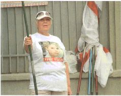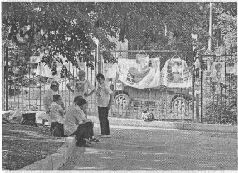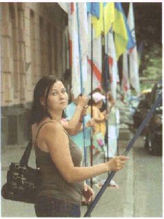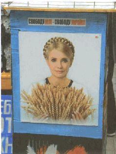 Интерес к выставке фотографий в стане тимошенковцев перед зданием суда на Крещатике весьма сдержанный. Внизу справа на фотографии на стенде – Тимошенко и Меркель