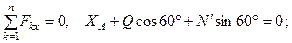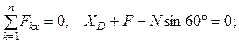2. Рассмотрим равновесие угольника (рис. 1.10, в). На него действуют сила давления стержня