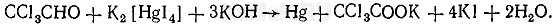Для отличия хлоралгидрата от хлороформа может быть использована реакция с реактивом Несслера. Эту реакцию дает хлоралгидрат, содержащий альдегидную группу. Не дает этой реакции хлороформ. Реакция с реактивом Несслера. При взаимодействии хлоралгидрата с реактивом Несслера выделяется свободная ртуть: