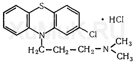 Аминазин (хлорпромазин, плегомазин, хлоразин, ларгактил и др.) представляет собой белый или белый с кремоватым оттенком мелкокристаллический порошок. Аминазин гигроскопичен, темнеет под влиянием света, хорошо растворяется в воде, этиловом спирте и хлороформе. Он практически не растворяется в диэтиловом эфире. Растворы аминазина имеют кислую реакцию. Аминазин экстрагируется органическими растворителями из щелочных растворов. Применение. Действие на организм. Аминазин принадлежит к числу основных нейролептиков. Он оказывает сильное седативное действие. При больших дозах аминазин вызывает сон. Он усиливает действие снотворных, наркотических и местноанестезирующих веществ. Аминазин имеет противорвотное действие и успокаивает икоту. Он уменьшает проницаемость сосудов, снимает страх, тревогу, напряжение у больных психозами и неврозами. Аминазин применяется для лечения бессонницы, зудящих дерматозов. Он назначается при ряде психических заболеваний и т. д. Метаболизм. Метаболизм аминазина довольно сложный. При метаболизме происходит гидроксилирование, сульфоокисление, N-деметилирование, разрыв боковой цепи и другие изменения в молекулах аминазина. По данным литературы, до настоящего времени выделено около 20 метаболитов аминазина. Главными метаболитами аминазина у человека являются: 7-оксипроизводное этого препарата, десмонометиламиназин и соответствующие сульфоксиды указанных метаболитов. Перечисленные выше метаболиты выделяются с мочой. Некоторое количество этих метаболитов выделяется с мочой в виде конъюгатов с сульфатами и глюкуроновой кислотой. С мочой выделяется и часть неизмененного аминазина. В моче был найден еще ряд метаболитов, которые до сих пор не идентифицированы. Выделение аминазина из биологического материала (по Ε. Μ. Саломатину). 100 г измельченного биологического материала трижды настаивают по 2 ч с этиловым спиртом, подкисленным 10 %-м спиртовым раствором щавелевой кислоты до рН = 2...3. Соединенные кислые спиртовые вытяжки на водяной бане (при 40 °С) упаривают до густоты сиропа. Примеси, содержащиеся в сиропообразных остатках, осаждают 96 ° этиловым спиртом и фильтруют. Затем, спиртовые вытяжки выпаривают досуха. Сухой остаток растворяют в 100 мл воды, нагретой до 40—60 °С. Жидкость охлаждают и фильтруют. Фильтрат переносят в делительную воронку, доводят 5 %-м раствором щавелевой кислоты до рН = 2...3 и дважды взбалтывают с диэтиловым эфиром (по 50 мл). Водную фазу подщелачивают 50 %-м раствором гидроксида натрия до рН= 13 и взбалтывают с 3—4 новыми порциями диэтилового эфира по 5 мин (объем прибавляемого диэтилового эфира для каждой экстракции должен составлять третью часть объема водной фазы). Объединенные эфирные вытяжки взбалтывают с 0,5 н. раствором серной кислоты (по 10, 10, 10, 5 и 5 мл) в течение 5 мин. Кислые водные вытяжки соединяют и нагревают 3 мин на водяной бане, нагретой до 50—60 °С, для удаления диэтилового эфира. Освобожденные от диэтилового эфира кислые водные вытяжки используют для обнаружения аминазина. Выделение аминазина из крови. В колбу вместимостью 100 мл, снабженную обратным холодильником, вносят 5—10 мл крови и прибавляют 30—50 мл этилового спирта, подкисленного 10 %-м спиртовым раствором щавелевой кислоты до рН = 2...3. Колбу нагревают на кипящей водяной бане в течение 10 мин, а затем охлаждают. Спиртовую в