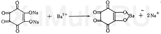 Образовавшаяся при этой реакции уксусная кислота не растворяет осадка хромата бария. Ионы стронция не мешают этой реакции, так как осадок хромата стронция растворяется в минеральных и уксусной кислотах. Реакция с серной кислотой. От прибавления к ионам бария серной кислоты или растворимых в воде сульфатов выпадает белый осадок сульфата бария. Этой реакции мешают ионы стронция, которые в указанных условиях тоже дают белый осадок сульфата стронция, который не растворяется в кислотах. Реакция с родизонатом натрия. Родизонат натрия с ионами бария образует красновато-коричневый осадок: