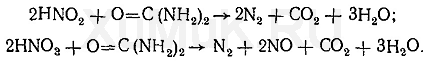 Оксиды азота окисляются кислородом воздуха до оксида азота (IV), при взаимодействии которого с водой образуются азотная и азотистая кислоты, разлагающиеся мочевиной, как указано выше. Предложено два варианта метода деструкции биологического материала, подлежащего исследованию на наличие ртути. Описание одного из этих вариантов приводится ниже. Для деструкции берут по 20 г измельченных органов трупов (печень, почки). Эти пробы подвергают деструкции раздельно, не смешивая их. Каждый деструктат на наличие ртути исследуют раздельно. Методика деструкции органов трупов. 20 г измельченных органов трупов вносят в коническую колбу вместимостью 200 мл, в которую прибавляют 5 мл воды, 1 мл этилового спирта и 10 мл концентрированной азотной кислоты. Затем в колбу малыми порциями прибавляют 20 мл концентрированной серной кислоты с такой скоростью, чтобы оксиды азота не выделялись из колбы. После окончания прибавления концентрированной серной кислоты колбу оставляют на 5—10 мин при комнатной температуре (до прекращения выделения оксидов азота). Затем колбу устанавливают на кипящую водяную баню и нагревают в течение 10—20 мин. Если после нагревания колбы на кипящей водяной бане останутся неразрушенными кусочки биологического материала, то их осторожно растирают стеклянной палочкой о стенки колбы. При бурном протекании реакции с выделением оксидов азота в колбу прибавляют 30—50 мл горячей воды. Полученный горячий деструктат смешивают с двойным объемом кипящей воды и, не охлаждая жидкость, фильтруют ее через двойной увлажненный фильтр. Фильтр, через который фильтровали деструктат, и остатки жира на нем 2—3 раза промывают горячей водой. Промывные воды присоединяют к профильтрованному деструктату. Полученную при этом жидкость собирают в колбу, содержащую 20 мл насыщенного раствора мочевины, предназначенной для денитрации деструктата. Затем деструктат охлаждают, доводят водой до определенного объема и исследуют его на наличие ртути. Деструкция органических веществ в моче. В моче здоровых людей ртуть и ее соединения отсутствуют. Однако при отравлении ртутью она может поражать почки и выделяться из организма с мочой в виде соединений с белками, аминокислотами и другими органическими веществами. Некоторое количество ртути может переходить в мочу и в виде ионов. Поэтому для обнаружения ртути в моче необходимо производить деструкцию белковых и других ртутьсодержащих соединений, переходящих в мочу. А. Ф. Рубцов и А. Н. Крылова разработали два способа деструкции органических веществ в моче: 1. В колбу Къельдаля вместимостью 500 мл вносят пробу нефильтрованной суточной мочи объемом 200 мл. К моче прибавляют 35 мл концентрированной азотной кислоты, 2 мл этилового спирта и небольшими порциями в колбу вносят 25 мл концентрированной серной кислоты. Прибавляют эту кислоту так, чтобы не вспенивалась жидкость в колбе и не выделялись из нее оксиды азота. После окончания прибавления концентрированной серной кислоты содержимое колбы нагревают на кипящей водяной бане в течение 40 мин, затем прибавляют 20 мл насыщенного раствора мочевины. Если в деструктате имеется осадок, то его отфильтровывают, фильтр промывают горячей водой. Промывные воды присоединяют к деструктату, который подвергают исследованию на наличие ртути. 2. В колбу Къельдаля вместимостью 500 мл вн