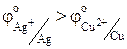 Исходя из величин стандартных электродных потенциалов рассчитать константу равновесия реакции, протекающей в гальваническом элементе: Cu + 2AgNO3 ® Cu(NO3)2 + 2Ag. Решение: По ряду напряжений находим, (-) Cu½Cu2+ ½½Ag+½Ag (+).