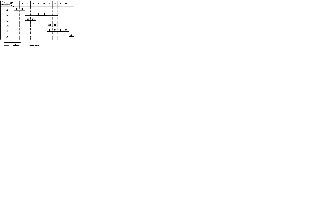 На підставі показників цієї таблиці будується календарний графік потреби у певному ресурсі по всіх роботах (рис. 7.2).