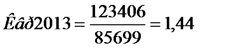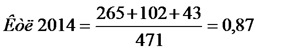 Итак, в 2013г коэффициент выручки превышает коэффициент валюты на 0,31 ед., но в 2014г. этот коэффициент снизился. Таким образом, изменилось соотношение – коэффициент выручки стал меньше коэффициента валюты. Финансовые результаты деятельности в 2013 и 2014 гг. немногим отличаются, но в этот же период произошел рост итогов баланса, что характеризуется ростом собственного капитала и сокращением кредиторской задолженности, это положительно влияет на устойчивость организации.