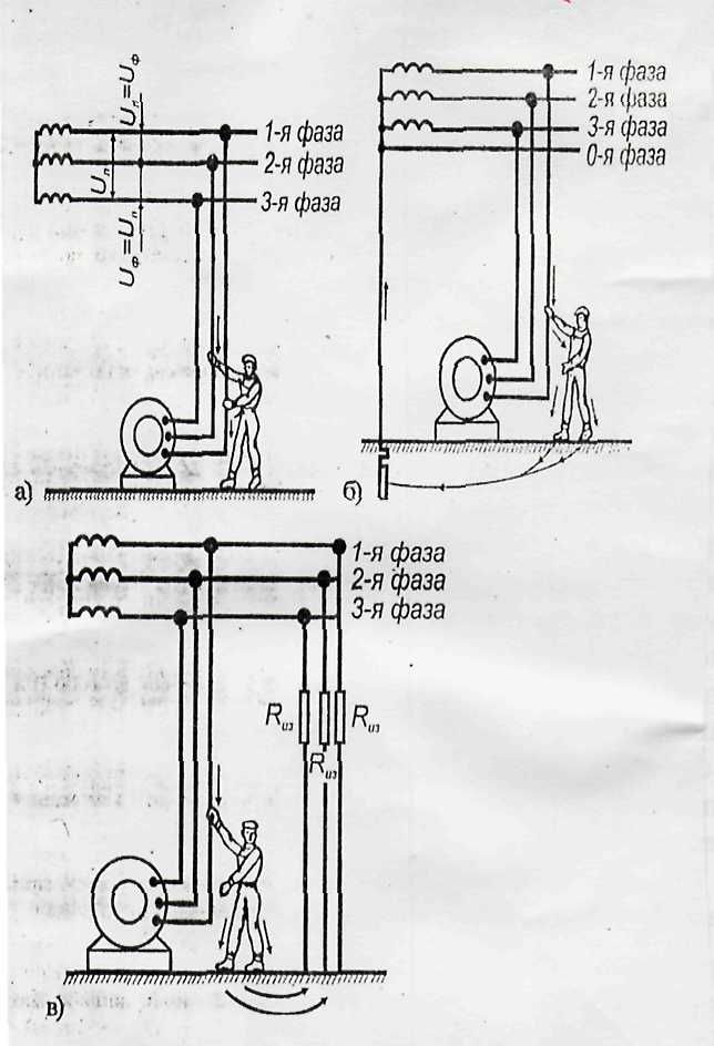 Рис. 6.1. Поражение человека током при включении в сеть: а) двухфазным; б) однофазным в системе с заземленной нейтралью; в) однофазным в системе с изолированной нейтралью. Рис. 6.2. Напряжение шага а) наличие повышенной влажности (> 75 %); б) наличие токопроводящих оснований или токопроводящей пыли; в) наличие повышенной температуры (более 35 %); г) возможность одновременного контакта с металлоконструкциями, оказавшимися под напряжением и с заземленными металлоконструкциями. К признакам особой опасности относятся: а) наличие химически активной среды; б) наличие сырости (относительная влажность 100 %); в) наличие двух и более признаков повышенной опасности; г) работа электроустановок на открытом воздухе. Если же нет признаков, характеризующих повышенную или особую опасность, то помещения (условия работы) относятся к категории без повышенной опасности. Это сухие, отапливаемые помещения с диэлектрическим полом (административные помещения, учебные аудитории, конструкторские бюро, жилые комнаты и т.д.). С учетом категории помещений и условий эксплуатации выбираются электроустановки соответствующего исполнения и качества электропроводки. Date: 2015-09-24; view: 583; Нарушение авторских прав |