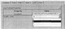 Рис. 12. Диалог User-Defined Property Editor Значение свойств, определяемых пользователем, задается в закладке UDP диалога Entity Editor. Если присвоить сущности значение свойства Document "D:\MSOffice97\Office\WINWORD.EXE part3.doc" (рис. 13), то из закладки можно редактировать документ part3 (кнопка “…” в строке таблицы UDP).