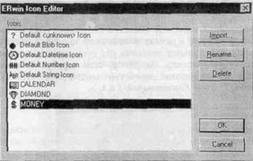 Рис. 16. Диалог Erwin Icon Editor Каждому домену соответствует стандартная иконка, однако можно импортировать и дополнительные изображения. Кнопка “…” справа от списка выбора Icon вызывает диалог ERwin Icon Editor (рис. 16), щелкнув по кнопке Import можно добавить в список необходимую иконку.