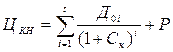 где Цкн - стоимость земельного участка, определенная путем косвенной капитализации (в гривнах); Доі - ожидаемый чистый операционный или рентный доход за i-и год (в гривнах); Р - текущая стоимость реверсии; t - период (в годах), который учитывается при косвенной капитализации чистого операционного или рентного дохода.