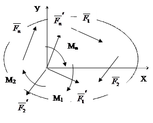 Основна теорема статики про приведення системи сил до даного центра: Будь – яка плоска довільна система сил, діючих на абсолютно тверде тіло, при приведенні до довільно обраного центра О, може бути замінена одною силою Випадки приведення плоскої системи сил до простішого вигляду