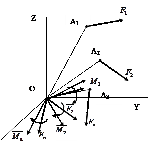 8.2 Визначення головного вектора та головного момента просторової системи сил Головним вектором системи