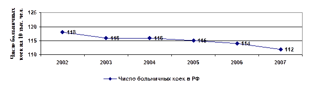 Таблица 2. Число больничных коек на 10000 человек населения в РФ за период с 2002 по 2007 гг.
