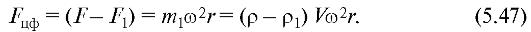 где ρ - плотность жидкости. Предположим теперь, что выделенный объем V - это сепарируемая частица, плотность вещества которой ρ1(ρ1 Φ ρ). Сила, действующая на частицу со стороны окружающей жидкости, не изменится, как это видно из формулы (5.45). Для того чтобы частица вращалась вместе с жидкостью, на нее должна действовать центростремительная сила, равная: