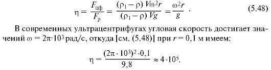 Это выражение показывает, что эффект центрифугирования тем больше, чем больше различие плотностей сепарируемых частиц и жидкости, а также существенно зависит от угловой скорости вращения1. Сравним разделение центрифугированием с разделением с помощью силы тяжести: