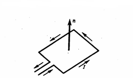 Из многочисленных опытов известно, что, подобно тому, как в пространстве, которое окружает электрические заряды, возникает электростатическое поле, так и в пространстве, которое окружает токи и постоянные магниты, возникает силовое поле, называемое магнитным. Наличие магнитного поля определяется по силовому действию на помещенные в него проводники с током или постоянные магниты. Термин «магнитное поле» связывают с ориентацией магнитной стрелки под действием поля, которое создается током (это явление впервые открыто датским физиком X. Эрстедом (1777—1851)). Как мы уже знаем, электрическое поле оказывает силовое воздействие как на неподвижные, так и на движущиеся в нем электрические заряды. У магнитного поля имеет важнейшая особенность состоит в том, что оно оказывает силовое воздействие только на движущиеся в этом поле электрические заряды. Из опытов известно, что характер воздействия магнитного поля на ток меняется в зависимости от формы проводника, по которому течет ток, от расположения проводника относительно магнитного поля и от направления тока. Значит, чтобы охарактеризовать магнитное поле, необходимо исследовать его воздействие на определенный ток. При изучении характеристик электростатического поля использовались точечные заряды, аналогично, при изучении характеристик магнитного поля используется замкнутый плоский контур с током (рамка с током), у которого линейные размеры малы по сравнению с расстоянием до токов, образующих данное магнитное поле. Ориентация контура в пространстве задается направлением нормали к контуру. Направление нормали задается правилом правого винта: за положительное направление нормали бетеся направление поступательного движения винта, у которого головка вращается в направлении текущего в рамке тока (рис. 1).