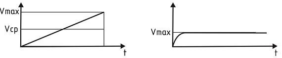 а б Рис. 4.7. Скорость штока пневмоцилиндра: а – не ограничена расходом воздуха; б – ограничена расходом воздуха Время перемещения штока на длине хода H