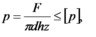 где z - число витков резьбы в гайке; [ p ] - допускаемое давление в резьбе. Принимая, для трапецеидальной резьбы h = 0,5 t, z = H/t = y Hd / t, где H – высота гайки, y H = H / d = 1,2…2,5, получим формулу для определения диаметра винта