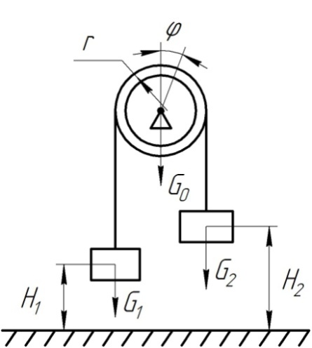 где h 1, h 2 – начальные высоты грузов над горизонтальной плоскостью.