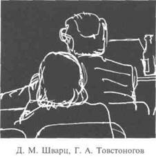 Татьяна Бедова спросила Ю. Е. Аксенова, как правильно произносить: аспидный или аспидный? «Аспидный, по-моему, — ответил Юрий Ефимович, — а вы как считаете, Георгий Александрович? Мне кажется, ударение на втором слоге». «Конечно на первом, Юра. Аспидный даже на ухо не ложится», — сказал Товстоногов, смотря на сцену. Декорации уже стояли. Устанавливали свет. ¶ Репетиция началась с просмотра эпизода «Григорий — Наталья». Проверялось, как запомнили актеры последний вариант, который утвердили вчера. Звезды на заднике исчезли, появился диск, который, в зависимости от освещения, может быть либо солнцем, либо луной. ТОВСТОНОГОВ (Кочергину). Эдик, как вы считаете, хорошо ли при этом интерьере дать луну? КОЧЕРГИН. Можно. ТОВСТОНОГОВ. Я знаю, что можно. Мне интересно знать: хорошо ли это будет? КОЧЕРГИН. Надо попробовать высветить диск. ТОВСТОНОГОВ (Кутикову). Высветите луну холодным синим светом, пожалуйста. По-моему, хорошо. А по-вашему? КОЧЕРГИН. И по-моему. Наплыв. Встреча Аксиньи и Григория. ТОВСТОНОГОВ (Изотову). Не орите так музыкой, Юра. (Крючковой.) Увидев Григория, остановитесь и скажите перед тем, как броситься к нему: «Гриша». И добавьте эпитет какой-нибудь из Шолохова. КРЮЧКОВА. Можно я скажу: «Любый»? ТОВСТОНОГОВ. Скажите. (А. М. Янокопулосу.) Да, засвеченный задник — это полная му-ренция. Ничего со световой музыкой пока не получается. Товстоногов встал и, не отрываясь взглядом от сцены, позвав за собой Янокопулоса, зашагал по проходу назад, направляясь к сидящему сзади рядом с выносным пультом Кутикову. На сцене обиженная Наталья столкнулась с матерью Григория. (Призван-Соколовой.) Не надо все время в небо говорить! Вы ж не с Богом разговариваете?! На небо можно один раз посмотреть, когда упоминаете господа, вот тогда небо пользуйте. Актеры продолжали репетицию, а у пульта Кутикова собрались Товстоногов, Кочергин, Янокопулос и Розенцвейг. ТОВСТОНОГОВ. В поиске света надо визуально ясно отделить прошлое от настоящего. Сколько мы говорили об том, а воз и ныне там! КУТИКОВ. Мы пробуем, Георгий Александрович, ищем, но пока не получается. ТОВСТОНОГОВ. И не получится, потому что особенно этот спектакль требует поисков новых для нашего театра способов освещения. А мы пользуемся приемами десятилетней давности. Я был в Москве, посмотрел у Любимова «Мастера и Маргариту». Чего у них только нет? И световой занавес, и столбы сверху, и снизу из-под решеток... КУТИКОВ. Я, к сожалению, «Мастера и Маргариту» не видел... ТОВСТОНОГОВ. Тут дело не в этом спектакле. У них световая аппаратура работает по этим принципам с образования театра. С «Десяти дней, которые потрясли мир». И, между прочим, когда они приезжают в Ленинград, то гастролируют во Дворце культуры Первой пятилетки, где сами знаете: свет хилый. И вот они за один день светоаппаратуру на свой лад перестраивают! Световой занавес привозят из Москвы и устанавливают. Фантастика! Вы что-нибудь видели у них? КУТИКОВ. Нет. ТОВСТОНОГОВ. Ни разу ничего? КУТИКОВ. Не довелось, я целыми днями в нашем театре. ТОВСТОНОГОВ. Как же так, Сева? Вы — человек искусства, вам же это необходимо! У Любимова все надо смотреть! Вот потому мы и не можем решить элементарную для крупного театра задачу: отделить прошлое от настоящего! КУТИКОВ. Пока не получается, Георгий Александрович! Но мы ищем! Вот, посмотрите! ТОВСТОНОГОВ. «Зайчики» запрыгали??? 