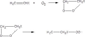 Образующиеся радикалы могут взаимодействовать с молекулами непредельных мономеров. При этом разрывается двойная связь, и образуется новый свободный радикал.