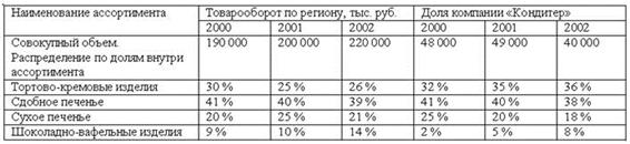 Рассчитайте и обоснуйте возможные ценовые решения (предельную, техническую и нормативную цены) для нового шоколадно-вафельного батончика «Шоколадный сюрприз» с учетом позиционирования. Компания «Кондитер» занимается выпуском различных кондитерских и хлебобулочных изделий. Это среднее предприятие в масштабах отрасли, но одно их 4-х ведущих в своем регионе. В последнее время с увеличением конкуренции, компания «Кондитер» постоянно вынуждена следить за деятельностью конкурентов и активно развивать маркетинг. В регионе, где в основном реализует свой товар компания «Кондитер», сложилась следующая ситуация по продажам кондитерских изделий. Таблица 34. Статистика с продаж на рынке кондитерских изделий
