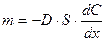 де: m - кількість речовини, що дифундує, в одиницю часучерез площу S,