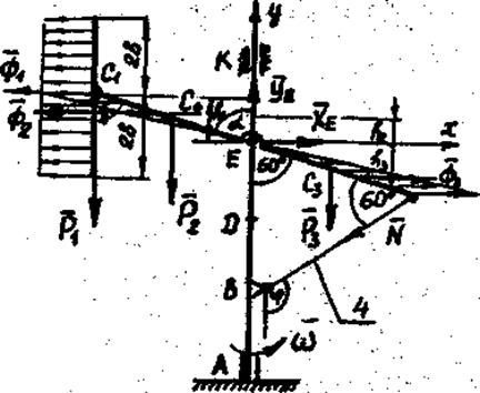 3. Согласно принципу Даламбера приложенные активные силы, реакции связей и силы инерции образуют уравновешенную систему сил. Составим для плоской системы сил три уравнения равновесия: