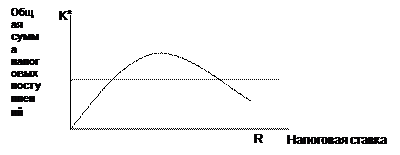 Данная кривая наглядно показывает, что по мере роста налоговых ставок (К) общая сумма поступлений в бюджет (R) растет. При этом значению ставки (К*) соответствует максимальный объем финансовых поступлений (R*) в бюджет. Дальнейшее увеличение ставок ведет к сокращению налоговых поступлений, так как является антистимулом для предпринимательской деятельности. Считается, что высшая ставка налогов для предприятий должна находиться в пределах 50 – 70 %, тогда они будут работать. Наши отечественные производители вынуждены порой 90 копеек с рубля отдавать государству в виде налогов, что подрывает заинтересованность предприятий в наращивании объемов производства. В зависимости от уровня государственной власти, вводящей налоги и распоряжающейся налоговыми поступлениями, различают центральные и местные налоги. В государствах с федеративным устройством налоговая политика осуществляется на трех уровнях: правительственном, региональном и, местном. Введенная с 1 января 1992 г. налоговая система Российской Федерации включает три группы налогов: Общегосударственные (Федеральные) налоги, взимаемые центральным правительством на основании государственного законодательства страны и направленные в госбюджет. Республиканские налоги, взимаемые органами управления национально – государственных и административных образований в составе Российской Федерации на основе законов данных республик и направляемые в республиканские бюджеты; Местные налоги, взимаемые местными органами власти и поступающие в местные бюджеты. Налоги выполняют следующие функции: 1. Фискальную 2. Регулирующую 3. Стимулирующую 4. Распределительную (перераспределительную). С помощью фискальной функции формируются государственные денежные фонды, необходимые для выполнения государством хозяйственно – политических функций. С фискальной функцией налогов связано происхождение известного афоризма: «Деньги не пахнут». Этой старой истине мы обязаны древнеримскому императору Веспасиану, который ввел налоги на отхожие места. Экзотические виды налогов рождаются и в наше время: правящая партия Гвинеи ввела в своей стране налог «на мир», оценив каждый год без войны в сумме 700 бельгийским франкам, изымаемую из кошельков граждан Гвинейской Республики. Используя регулирующую функцию, государство изменяет условия налогообложения (вводит одни и отменяет другие налоги), применяет систему налоговых ставок, льгот и штрафов, чем способствует решению важнейших социально – экономических проблем. Стимулирующая функция заключается в том, что маневрируя налоговыми ставками, льготами и санкциями, государство стимулирует развитие технического прогресса, инвестиций в базовые отрасли экономики. Во многих странах сумма прибыли, направляемая на техническое перевооружение, реконструкцию, освоение и расширение производства, освобождается от налогообложения. Распределительная (перераспределительная) функция налогов проявляется в том, что с помощью налоговой системы государство перераспределяет национальный доход в пользу тех или иных групп населения. Это достигается установлением прогрессивных ставок налогообложения, различных льгот и налоговых вычетов для граждан, нуждающихся в социальной защите. Государство в практике налогообложения соблюдает следующие принципы: 1. Обязатель