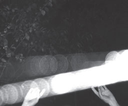 Результаты наблюдений неоднократно обсуждались на заседаниях комиссии по изучению аномальных явлений РГО СПб. Вообще, нельзя сказать, что наука оставалась совершенно равнодушной к необычным явлениям. Еще в 1980‑х годах итальянский ученый Лучиано Боккони вел фотосъемку с использованием датчиков альфа‑, бета– и гамма‑излучений, магнитометров и других приборов на высокочувствительную пленку (2). Фотосъемки происходили ночью в районе Аренцано в Италии на холме высотой 300 м. Фотоснимки Боккони фиксировали эфирные формы жизни, плазматические сущности, светящиеся существа, которые были названы им криттерами, то есть тварями. Похожие на амеб или больших рыб с крыльями, они скользили с невероятной скоростью, когда приземлялись или взлетали, следовали, как дельфины, за воздушными лайнерами, висели над крупными промышленными предприятиями. Во время пожаров Боккони отмечал сильные радиоактивные и магнитные аномалии. Инфракрасные снимки показали, что над местом пожаров висят крупные амебоподобные объекты. Объекты меньших размеров скользили на высоте одного метра над землей, проявляя любопытство, приближались к фотоаппарату на 4–6 метров, поднимались и отлетали. На всех снимках заметны следы дифракции, что свидетельствует о волновой природе объектов.