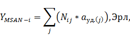 Нагрузка, создаваемая абонентами, подключенными к i-ому MSAN, рассчитывается по формуле: