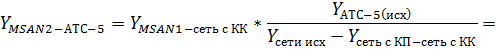 Произведем распределение интенсивности исходящей нагрузки от каждого MSAN к АТСЭ фрагмента сети с КК.
