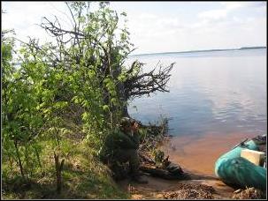 Перед мысом высаживаемся на берег на рыбацко – пикниковом месте с целью отобедать, затем выгребаем на обширные просторы Московского моря, продолжая обкручивать остров, - его северную часть. Интересно, какая ночевка нас сегодня ждет?
