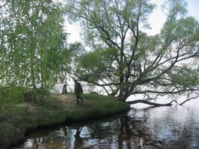 Ради душевного покоя поплыли дальше к машине. По пути попались рыбаки, успокоившие нас сообщением, что «четверка» стоит на месте. Тем не менее, мы доплыли до нее, чего-то извлекли забытое из багажника, а затем я дозвонился до своей работы, где меня тоже успокоили относительно состояния метеолокатора. И мы приняли решение заночевать на облюбованном месте. Ради таких ночевок и стоит затевать столь отдаленные путешествия.