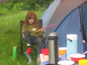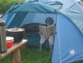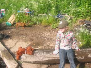 Вскоре лагерь обустроился, Лена пошла гулять по дорожке вдоль речки, мы остались с Полинкой, и та играла в песочек.