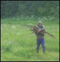Зато утро было сырым, прохладным и хмурым. Не помню, в какой последовательности произошли следующие события: 1. долгие и нудные попытки разжечь костер при дефиците дров, как сухих, так и вообще, 2. Очередная прогулка с открытием грунтового шоссе, по которому можно было достичь конечной точки нашего путешествия, то-есть селения Березовый Рядок, и, наконец, 3. – мне спину прострелило. Последнее обстоятельство усложнило наши сборы и несколько отравило радость походных впечатлений. Да и должен же дряхлеющий организм как-то отреагировать на такое шараханье погоды.