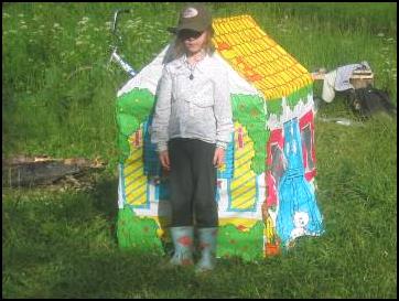 Переночевали, а утром состоялся поиск пиратского клада. На сей раз пираты даже не удосужились прятать его и закапывать, а просто положили на пенек на просеке. Полинка с ходу не сумела оценить все достоинства сборно-разборного домика, но когда мы его собрали объединенными усилиями, то конструкция сия стала любимым прибежищем нашей Полины. И от дождя спасал домик, и мультики в нем смотрела. Но по-настоящему оценили его качества в походе спустя сутки, об этом – чуть позже.