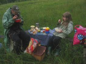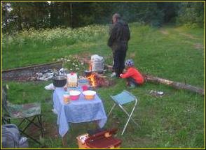 Стоянка оказалась тоже довольно запоминающейся. Вскоре после установки тента над палаткой я отправился на разведку в лес, и долгая дорога по нему вывела на кучу других дорог и лесов. Потом меня застал сильнейший продолжительный ливень, когда я уже возвращался назад. И закончился он только по возвращению. Потом в поход ушла Лена. И ей досталось от нового дождя, и лишь к вечеру окончательно утвердилось солнце.