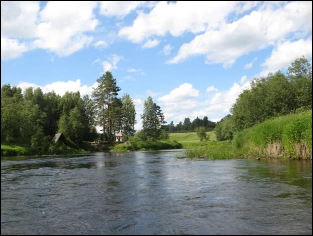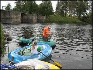 Погода напоследок радовала и настраивала. Поэтому, отблагодарив хозяев, полностью подготовились к последнему путешествию и спустили наши лодки. Предварительно сначала я один, а потом вместе с Полинкой преодолели ревущую дырку в плотине ради развлечения и затем на двух лодках втроем устремились к устью нашей речки. Устье представляло собой сплошной перекат, в том числе и под мостом в поселке, который продолжился и на Мсте. Которая вообще славится как самая порожистая река в Тверской области.