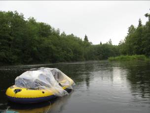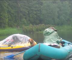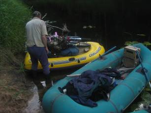 Следующий день начался с прохладного утреннего дождя. Под ним совершалась погрузка, причем по нашим правилам все, что боялось воды, было уложено в лодочку под пленку, а лодочка привязывалась к моей «посудине».