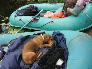 Было довольно жарковато. Немного далее доплыли до еще одной оборудованной стоянки. Но к ней сходились дороги, место явно цивилизованное. Да у нас и не было нужды устраиваться на ночлег, - путешествие только начиналось. Наши дамы в изнеможении повалялись на скамейке, Джулю еле разыскали в траве недалеко от лодок, она тоже спасалась от жары.