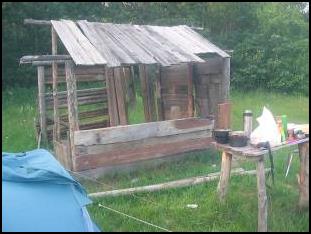 Выбор был сделан в пользу открытого местечка рядом с останками заброшенного сарая. Неидеальное, прямо скажем, место, особенно с точки зрения наличия дров. Но вновь приближалась непогодь, и мы должны были ее встретить «во всеоружии».