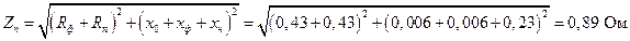 где Uф - фазное напряжение, В; ZT – сопротивление трансформатора, Ом; Zn – сопротивление петли «фаза-нуль», которое определяется по зависимости: