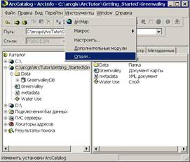 У папки Greenvalley есть указатель наличия в ней данных ГИС. По умолчанию ArcCatalog распознает в качестве дан ных ГИС множество различных типов файлов, включая шейпфайлы, покрытия, растры, TIN, базы геоданных, фай лы проекции и т.д. Кроме того, показываются все имеющие ся типы файлов, включая файлы метаданных с расширени ем по умолчанию.xml. Если список распознаваемых типов не включает тип файлов, которые вы используете в анализе ГИС, можно настроить ArcCatalog на распознавание допол нительных типов файлов – например, текстовых – как дан ных ГИС.