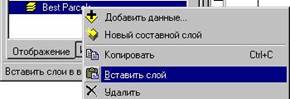 2. Щелкните правой кнопкой на фрейме данных Best Par% cels в таблице содержания и нажмите Вставить слой.