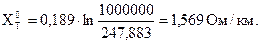 Активное сопротивление контура «трос – земля»: где р – число тросов в системе. Индуктивное сопротивление троса: где где Сопротивление взаимной связи между контурами провода линии и контуром троса с учетом присутствия земли в обоих контурах определяется по выражению где для случая линии 500 кВ, где 2 троса: Если внести сопротивление троса где