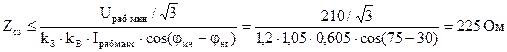 Максимальный режим работы защищаемой линии определен 1,05Uном, а минимальный - 0,95Uном. Нагрузочный максимальный ток линии примем равным длительно допустимому току защищаемой линии (605 А). Примем коэффициенты трансформации ТТ и ТН соответственно равными 1000/5 и 220000/100.