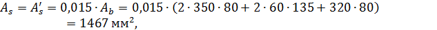 Предварительно задаемся площадями сечений арматуры в арке и в затяжке, а также вычисляем геометрические характеристики их сечений.