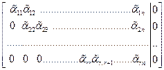 Это второй способ задания подпространств в L. Пусть L= Pn. Тогда множество решений системы (7.1) является подпространством в P п. Найдем базис и размерность этого подпространства. С помощью элементарных преобразований приведем систему (7.1) к ступенчатому виду. Для простоты будем считать, что x1,…, xr – главные неизвестные, а xr+1,…, xт – свободные неизвестные, то есть матрица системы имеет следующий ступенчатый вид: