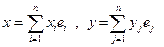 Определение. Линейное пространство Е над полем R называется евклидовым пространством, если на Е фиксирована функция двух векторных аргументов х, у Î Е со значениями в R, которая называется скалярным произведением, обозначается (х, у), и обладает свойствами 1. (х + у, z) = (х, z) + (у, z) " х, у, z Î Е, 2. (ax, y) = a (x, y) " х, у Î Е, " a Î R, 3. (x, y) = (y, x) " х, у Î Е, 4. (x, x) > 0 " х Î Е, x ¹ 0. Свойства 1, 2 означают линейность скалярного произведения по первому аргументу, свойство 3 называется симметричностью скалярного произведения, свойство 4 называется положительной определённостью. Следствия из определения. 1. (х, у+ z) = (у+ z, х)= (у, х)+ (z, х)= (х, у)+ (х, z) " х, у, zÎ Е. 2. (y, ax) = (ax, y) = a (x, y)= a (y, x) " х, у Î Е, " a Î R. Следовательно, скалярное произведение – это билинейная симметричная положительно определенная функция. 3. (0Е, х) = (0 R × 0Е ,x) = 0 R ×(0Е ,x) = 0 R Þ (0Е , 0Е) = 0. 4. Пусть е = {е1,…, еn } – базис в Е, Тогда (x,y)= ( 5. Легко видеть, что подпространство евклидова пространст- ва является евклидовым пространством. Date: 2015-09-25; view: 398; Нарушение авторских прав |